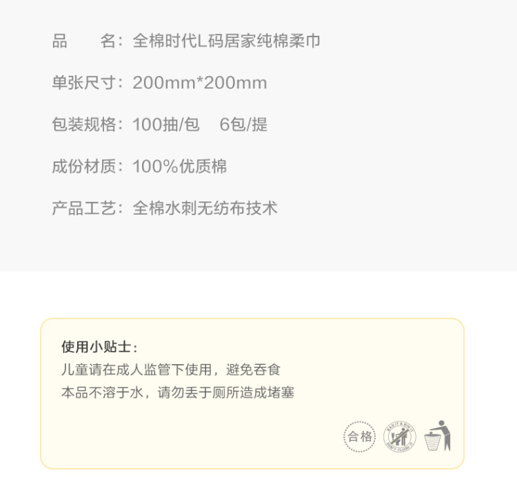 规格:100片/包,6包/袋(加大尺寸 20x20cm )
