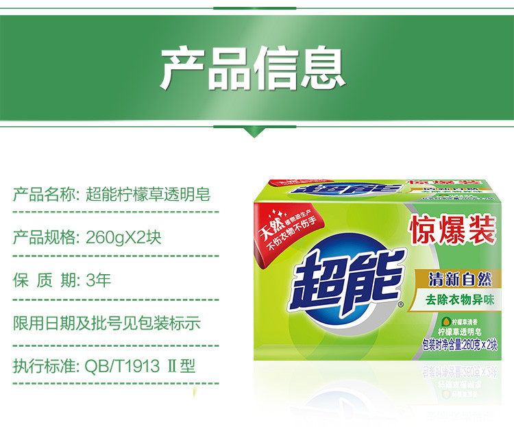 柠檬草透明皂洗衣皂260g*4大块肥皂家庭组合装去异味柠檬香