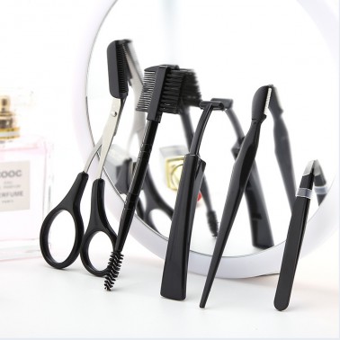 5件套不锈钢修眉套装刮眉刀小剪刀眉刮眉梳眉夹眉剪修眉工具