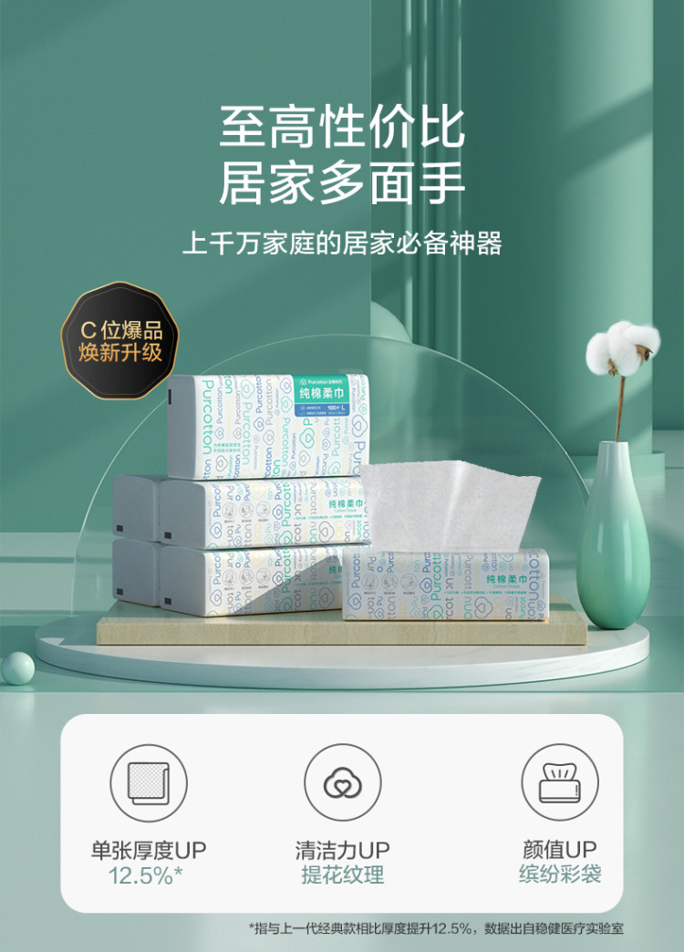 【加大】一次性洗脸巾女洁面巾棉柔巾纯棉干湿两用擦脸巾100抽6包